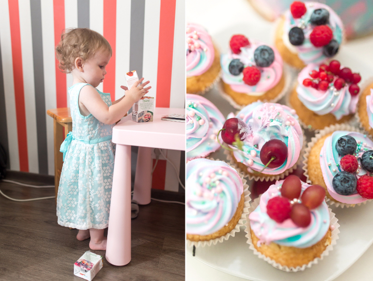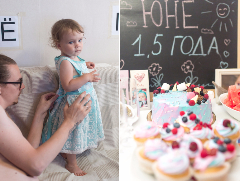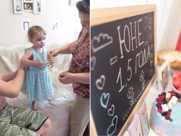 Растем и развиваемсяОчередная маленькая дата. 15 июля Юне исполнилось полтора года. Вообще я не планировала отмечать это событие, но душа моя не выдержала, потому что я очень люблю семейные праздники. Поэтому за неделю до 15-го июля я написала кондитеру, заказала тортик с пирожными и пригласила гостей. Изначально я хотела устроить пикник на природе, но у нас сейчас стоит просто неимоверная жара, днем температура доходит до +40 в тени, поэтому вариант праздника на свежем воздухе быстро отпал. Мы собрались тесным семейным кругом у нас дома. К нам в гости приехали мои родители и пришла Лешина сестра с мужем и детьми...вот и все гости. Но не смотря на это посидели мы очень душевно.