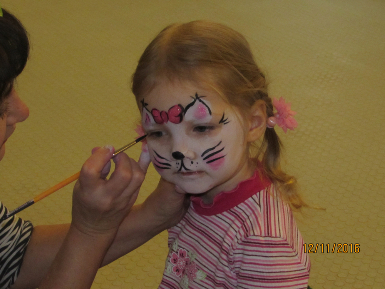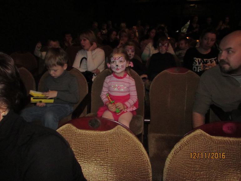 Спектакль длился 1 час 10 минут с антрактом, дочка вела себя замечательно, сам театр нам очень понравился, после раставрации там и сиденья трансформируются под детей и посадочное место становится выше на 25 см и уже, так что ножки удобно располагаются на подножке. Конечно, много завлекаловок для малышей в фое, и сфотографироваться можно, и игрушки разные для деток (мы купили маленького деревянного жирафа), и боевой расскрас для малышей предлагают. Много стоит витрин с разными куклами, очень интересно их разглядывать, но дочке не понравились, уж очень они "мистические". Так как перед началом спектакля не успели нарисовать котика на лице, то на это потратили весь антракт, не было у нас традиционного похода в буфет))). А я мечтала о бутерброде, почему-то это самое вкусное из моих воспоминаний)).