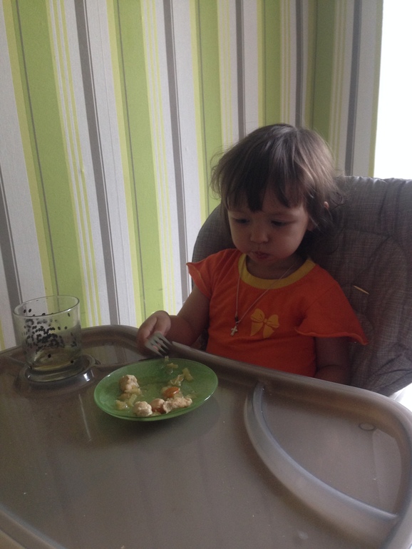ест нормально, в саду сама, но иногда докармливают,а вот дома ест избирательно, на завтрак всегда хорошо, а вот потом как попрет, понравится, съест все сама-нет пошлет тебя подальше. при этом одно и то же блюдо может день быть любимым, а на след день она и не притронется. Но вот яблоки и груши готова есть 24/7. Даю все, и так как мы питаемся здоровой пищей сами, то и Алиса не есть ничего вредного.