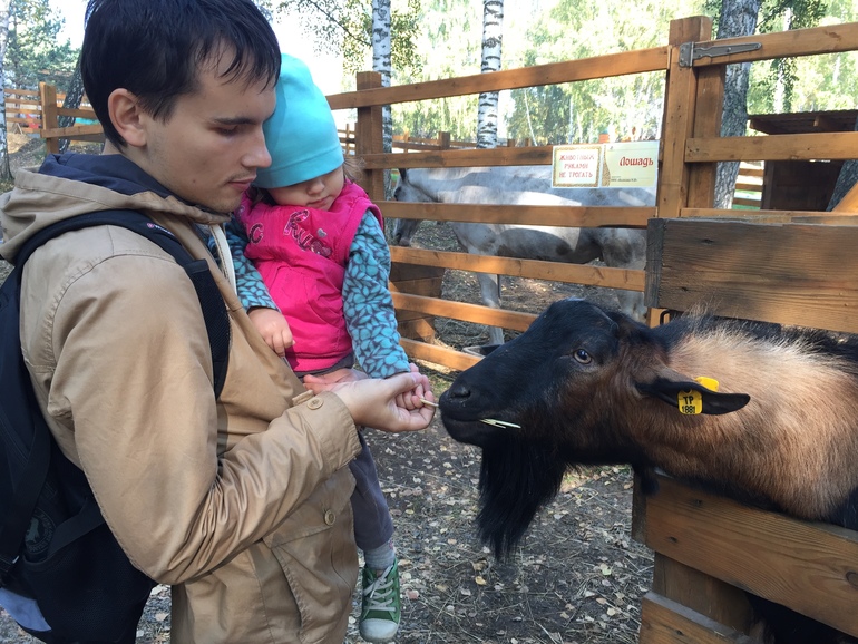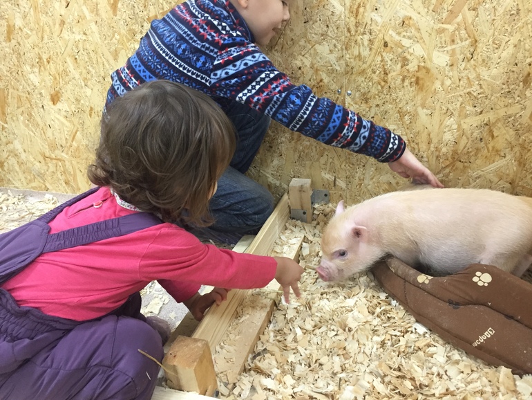 В контактном зоопарке жалует только свиней и кроликов,остальных только кормит и идёт дальше.