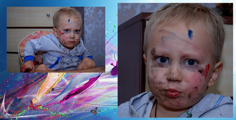 По-разному поступаю, чаще всего подаю идеи, мягко направляю. Все же в рисовании не только самовыражение важно, но и изучение техник, получение результата, развитие аккуратности. Правда, мой художник настолько брезглив, что измазать себе может только один пальчик)) ну и потом пальчиком кое-что вокруг)