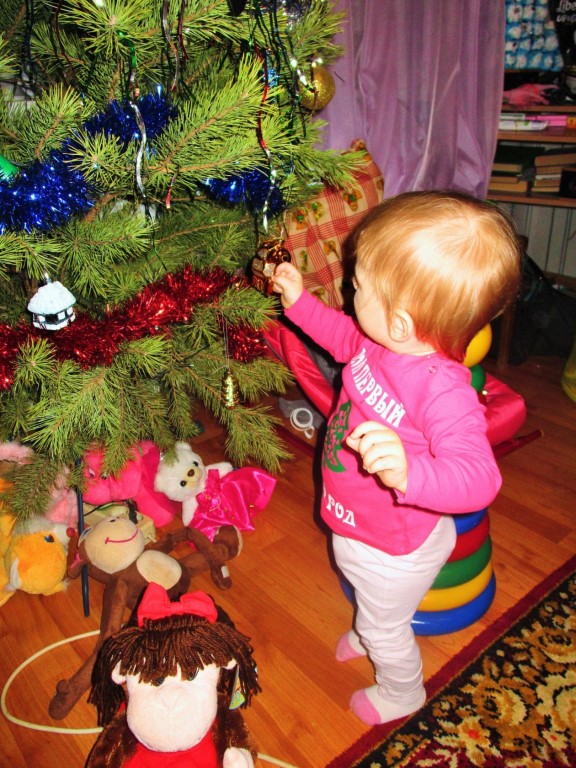 нашей в том году было как раз 1.6) ставили елку, шарики не бьющиеся) и ей было пофигу по большей части) смотреть -смотрела, но не трогала)