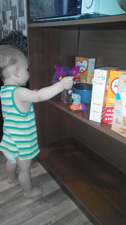 Я заводила шкафчик в который лазить можно. Купила маленький кухонный набор, игрушечные овощи и сложила туда вместе с ее поильником, слюнявчиками и прочим. Она с удовольствием все это разбирала.