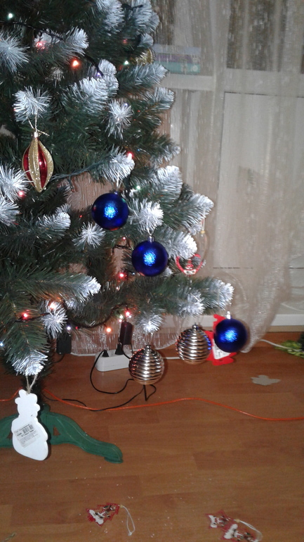Мы неделю назад нарядили, но елке писец пришел)) дочь ее все-таки достала, хоть и елка на подоконнике стоит