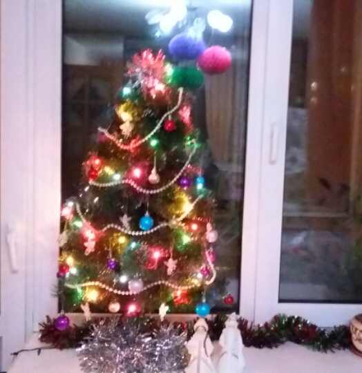 поставили елочку, украсили окна и двери- и такое новогоднее настроение появилось! Хотя на улице 0 и лужи...😢😂
