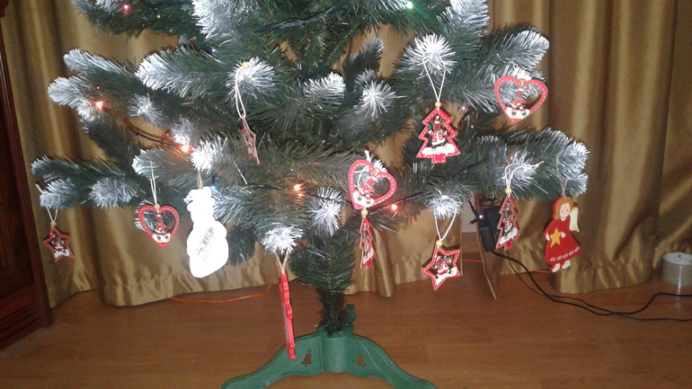 Мы еще не нарядили. Вообще обычно за неделю до нового года наряжаем. А в этом году у нас все наперекосяк, так как в первых числах января переезжаем. Думаю, в следующие выходные нарядим елку в новой квартире, потом приедем к ней)