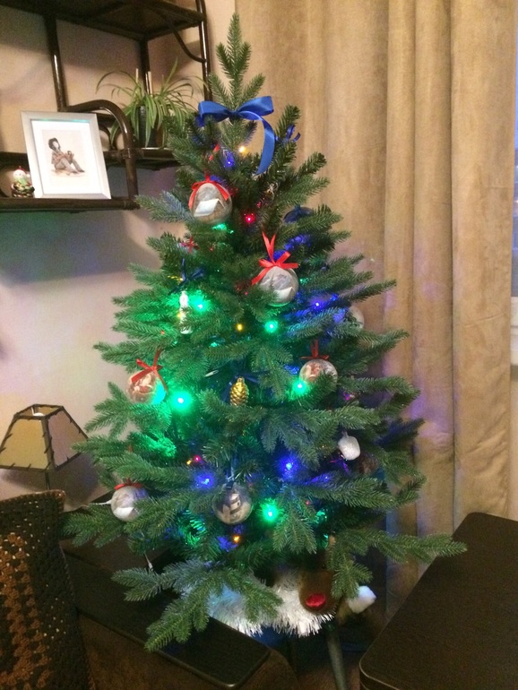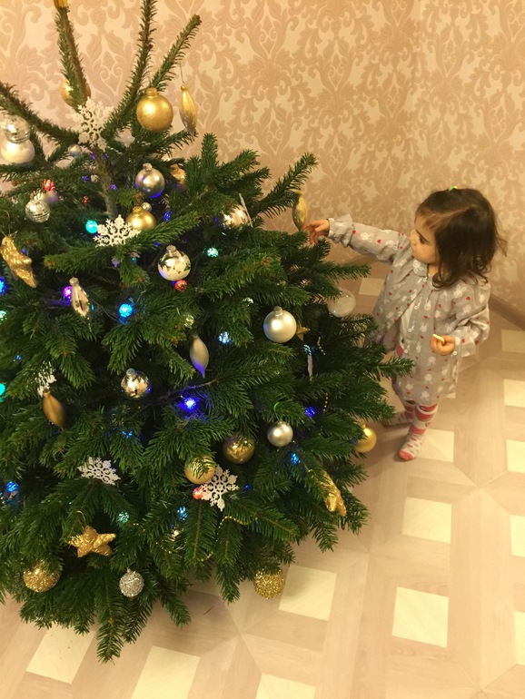 Нарядили! Поставили повше, тк кроме сына, оочень она интересна коту! А хочется, чтоб до нового года достояла )))