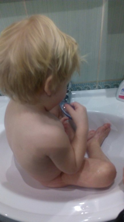 Удобно в раковине! Мой тоже требует добавку пасты и пытается пить воду.. Но месяц ежедневных скандалов заставил его понять, что сначала родители чистят зубы, а потом уже игры.