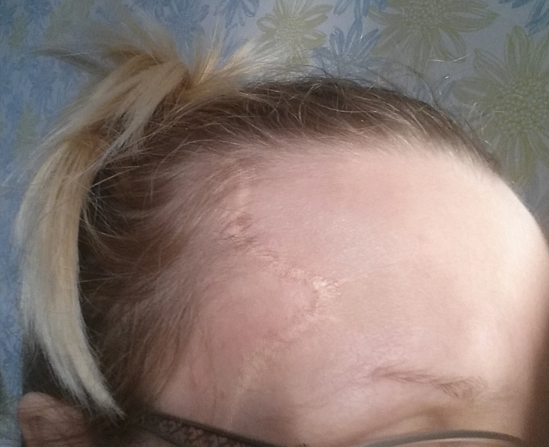 А это было в мои 2,5 года, прихожая, просто прихожая до потолка. И я под ней. Там же наверху белые сандалики лежали, красивые, надо было достать. Шрам до затылка.