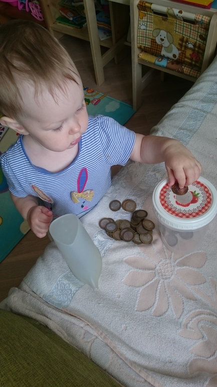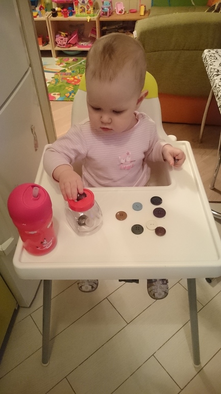 Пластилин. Это дело у нас не пошло. Пока со рвет на мелкие кусочки и все. Рано еще, видимо) а когда я пыталась показать как катать шарик - повторяет, пробует, но плачет из-за того, что не получается. В общем отложила я это дело.