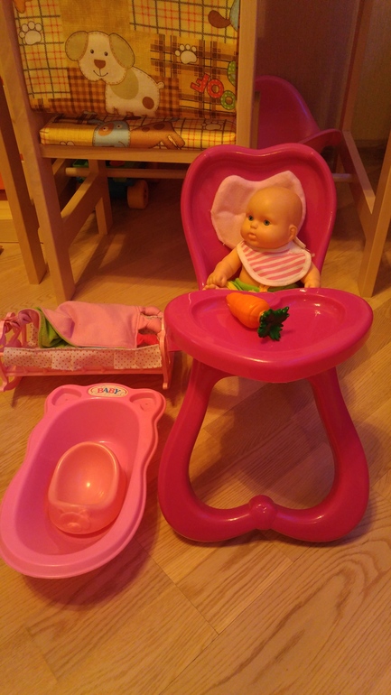 Совсем мало играем в куклы хотя был периуд летом катали коляску вообще без нее не выходили на улицу и пришлось даже домой купить дома катала одну на улицу другую прошло.