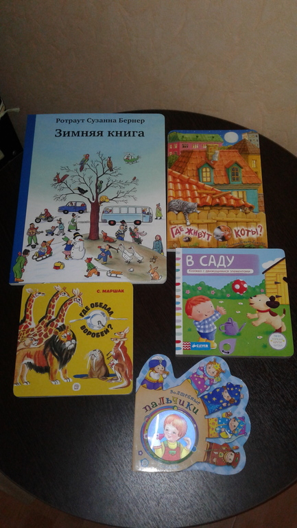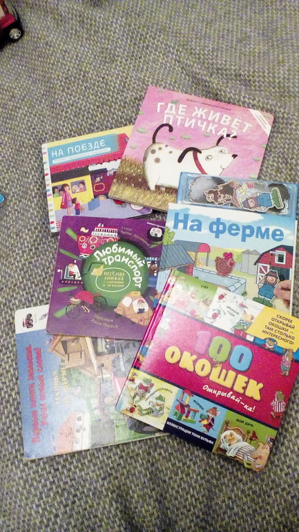 Посмотрите мой обзор Что почитать с самыми маленькими, у нас и тактильные книжки, и с подвижным элементами и с окошками и панорамка и обычные.