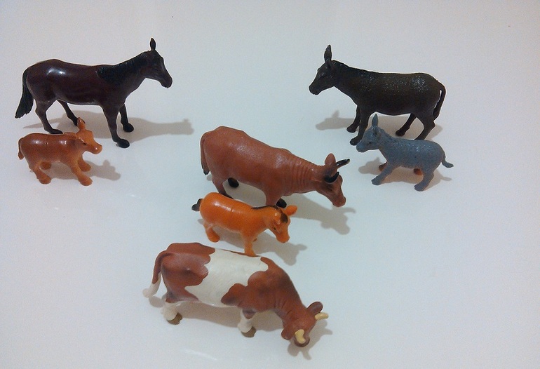 Если сравнивать все наборы, то в плане исполнения этот самый слабый. Немного страдают пропорции (осел и бык практически одинакового размера) и пластик легкий, но на ногах фигурки стоят отлично. Кстати, бык в этом наборе отличный и замечательно подошел к уже имеющейся корове от Буллиленд.