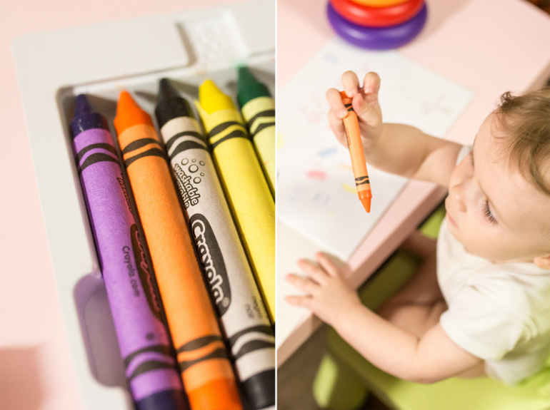 Из за болезни мы всю неделю не выходили на улицу. Нужно было как-то развлекаться дома. Поэтому я решила, что самое время купить детский столик, стульчик и материалы для творчества. Сказано - сделано, в тот же вечер в нашем доме появились симпатичный столик и стульчик из икеи, альбом для рисования, карандаши и восковые мелки. Пальчиковые краски у нас были до этого. Нужно будет докупить еще пластилин.