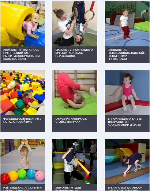 Дочке 1.7 мы ходим в такой центр,дочь в восторге,2 тренера на занятиях,длится 45 мин,бегают по полосе препятствий,потом батут.