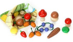 Ребенок очень любит играть с мелкие фигурками, поэтому у нас таких мешочков тьма! Еще приношу, конечно же кубики деревянные, резиновые мелкие мячики, так же покупаю в канцелярских магазинах стеклянные шарики и шарики из пенопласта. Еще любит игрушки забивалки молоточком, игры где нужно спускать шарик по лабиринту и еще много всего!