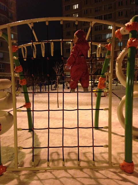 Теперь об остальном. Если Мия не занята чем-то, то прыгает и скачет. Может на велосипеде по дому прокатиться или на самокате. Может побегать и попрыгать. На улице то же самое. Любит взбираться по лестницам и канатным стенкам. Любит демонстрировать свои достижения самой же себе - кататься с высоких и очень высоких горок, подниматься по высоким лестницам, не держась, и все в таком духе))) Но при этом не безбашеная, есть чувство самосохранения. С горок катается всегда только сидя, даже попыток скатиться лежа не предпринимала - боится=) Перестала любить, когда ее переворачиваешь вверх ногами, - тоже боится. А вот ходить на руках, когда держишь ноги, любит. Чуть было не открыла для себя, что можно кувыркаться, но пока не открыла, а я этому не способствую - я этого опасаюсь, потому что не знаю, как нужно кувыркаться правильно, да еще и в таком возрасте...
