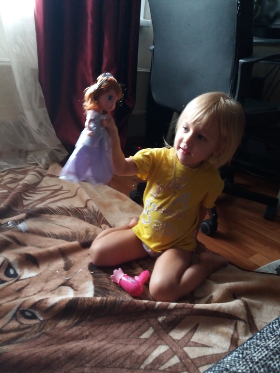 Подарили синтезатор с микрофоном и можно даже музыку записывать, серьезный такой) она у нас любит петь и танцевать) вот теперь и играет)) ну и куклы из мультиков) любимая София прекрасная и из Холодного Сердца 2 куколки)