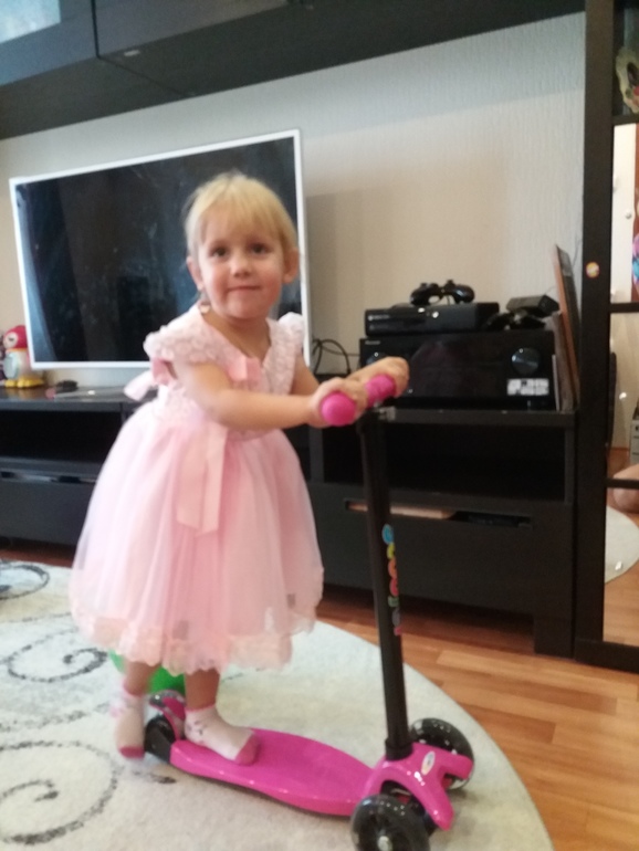Подарили нам самокат, только пока не очень получается, да и желания большого нет(
