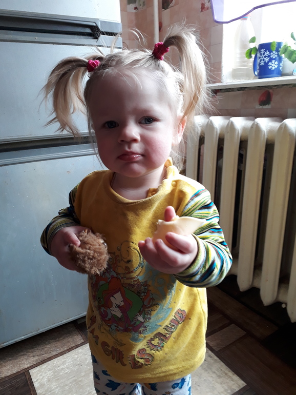 Растем и развиваемсяКак быстро растёт моя девочка!ещё совсем недавно несмышленыш,а уже такой деловой человек :-) вес приблизительно 11 кг,рост 81.отрастили 16 зубов!!!!кушает все с общего стола.ест в принципе сама ложкой неплохо,но конечно все вокруг в еде:-) категорически отказывается от любых каш( остальное ест все,особенно любит мясное.говорит довольно много-мама,папа,баба,дедаа,тётя,дядя,ляля,кака,няня,смешно спрашивает'те то?'это типа что это?),изображает как гавкает собака,киса,воет волк.очень любит танцевать:-) услышит любую музыку и в пляс:-) сделает лужу и идёт сама за тряпкой вытирать:-) понимает все просьбы что то принести и т.п.характерная,что не по ней,сразу в крик.любимая игрушка-пупс.ходит с ней,качает,приговаривает-ляля.кормит,одевает ее:-) такая сладкая стала,и так интересно когда общаешься ребёнком и он все понимает:-) мамин хвостик конечно, без неё что то сделать нереально.не сидит ни с папой ни с сестрой.но полегче стало,занять хоть рядом с собой чем то можно)выдаю ей мисочкии ложку,сидит лялю свою кормит)одна беда пока-с горшком( идёт на него при первой просьбе,но ничего туда не делает,просто сидит(