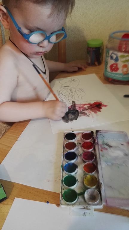 С каким же воодушевлением он говорит :" мама, Каськи" и как горят глаза, когда я достаю заветную коробочку и кисточки. Он непременно даёт мне одну, ведь мы должны рисовать вместе)