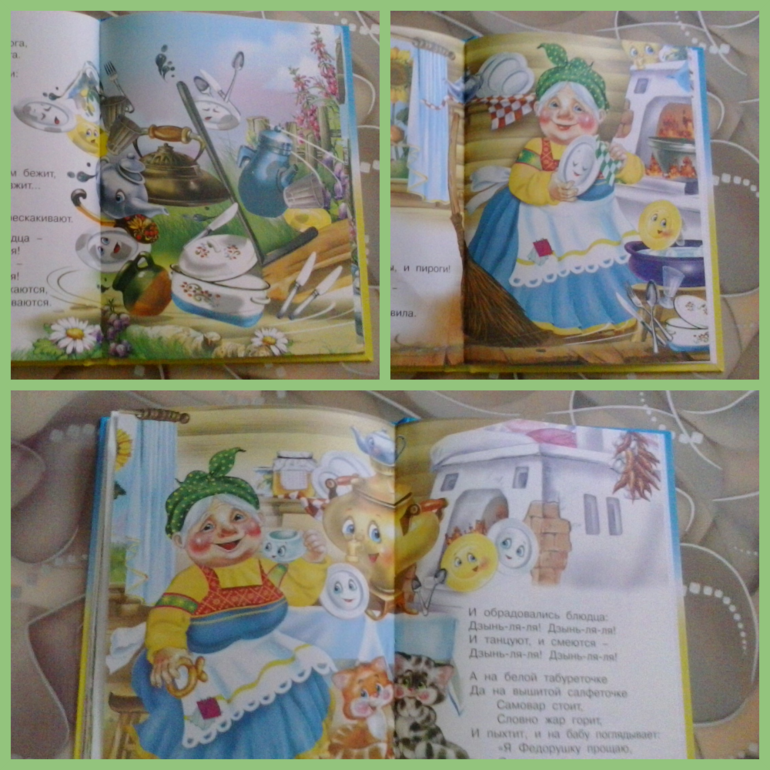 5. "Федорино горе" .Эта сказка шла вместе с Мухой-Цокотухой в одной книжке. Но скажу сразу, что пока нам ее рановато читать. Только картинки заинтересовали. Что касается текста, то что там за корыто и сито, которые скачут и почему они это делают - не ясно )))) В общем, будем разбираться детально в сказке. Сама любила эту ритмичную сказку в детстве. И вообще считаю, что Чуковский радует детей своими произведениями и они легче всего читаются и воспринимаются ребятишками.