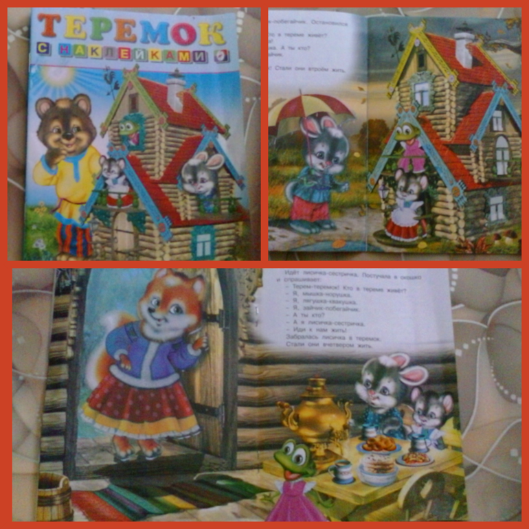 3. Книжка "Теремок" с наклейками. Выбор был очевиден. Танюша очень любит такие книжки. Находить и наклеивать героев сказки и предметы быта - это очень интересно и для развития внимания полезно.