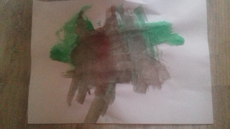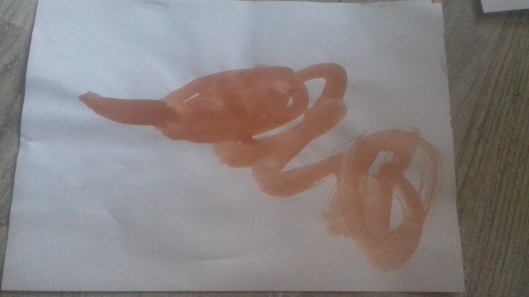 Вот вчерашнее, каляки превратились в прекрасного динозавра, малыш доволен))