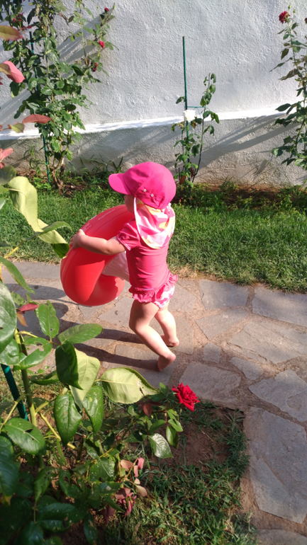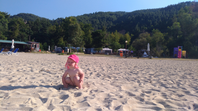 В июле съездили на море в Грецию и вот спустя неделю после этого она начала говорить новые слова. Пока не все понятно, не всё слово целиком выговаривает, но прогресс пошел. Попробую вспомнить все слова, которые появились у нее за это время, хотя думаю, что все уже не вспомню)