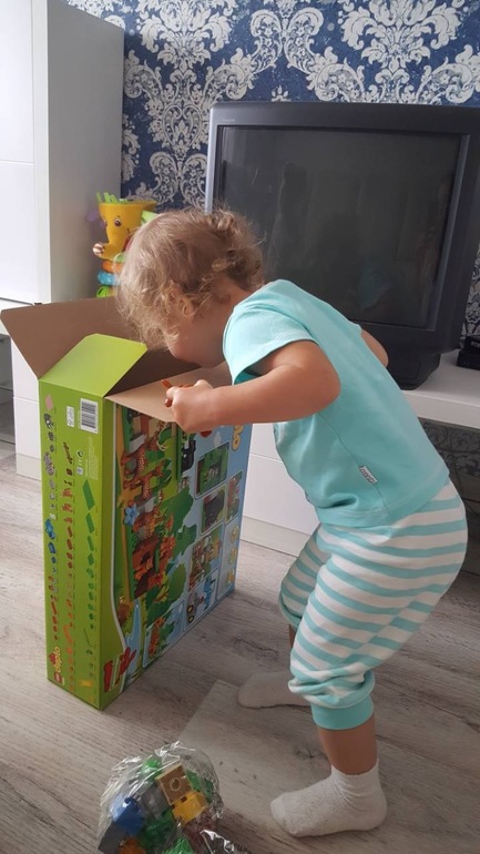 Первым делом попросила отвязать шарики от медведя. Дальше пошли объятья с мишкой и конечно же Лего! Это уже наш пятый набор, но этот самый большой (Лесной заповедник).
