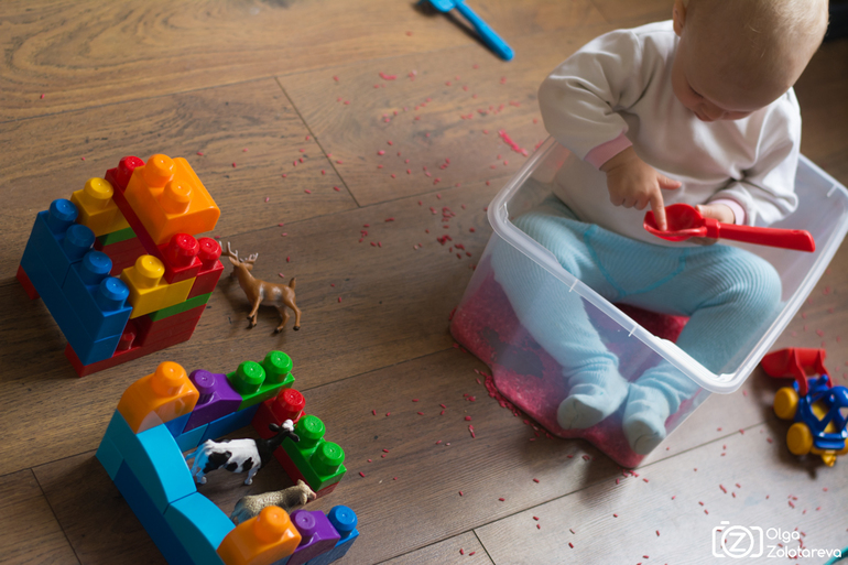 Песок, вода, крупы, тесто, наклейки - всё в ходу, но без изменений.