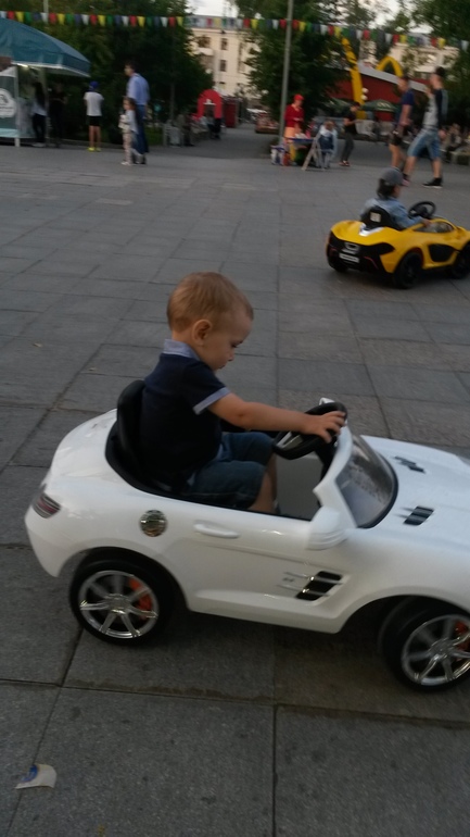 В год подстригли в детской парикмахерской в кресле-машинке. Сидел спокойно,хотя по жизни шилопоп