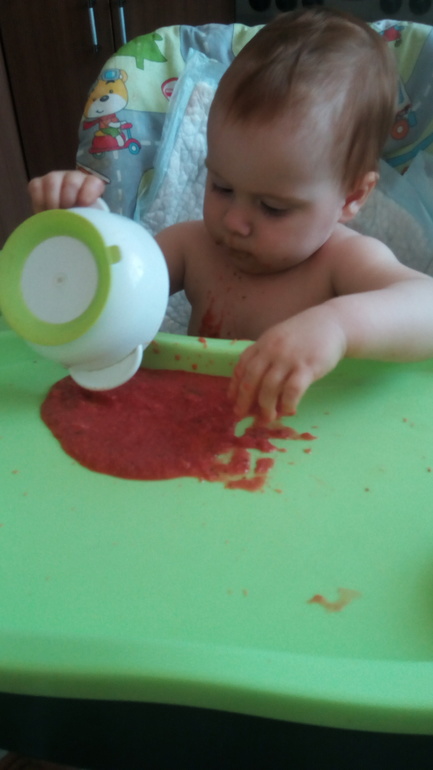 Нам 1,1 и я кормлю сама,ему даю ложку только поковыряться, пару раз попробовала как вы,тарелка была на полу и все разлито.Вот и спрашивается нафига мне это нужно? Мне жалко свой труд по готовке, плэтому пока так.
