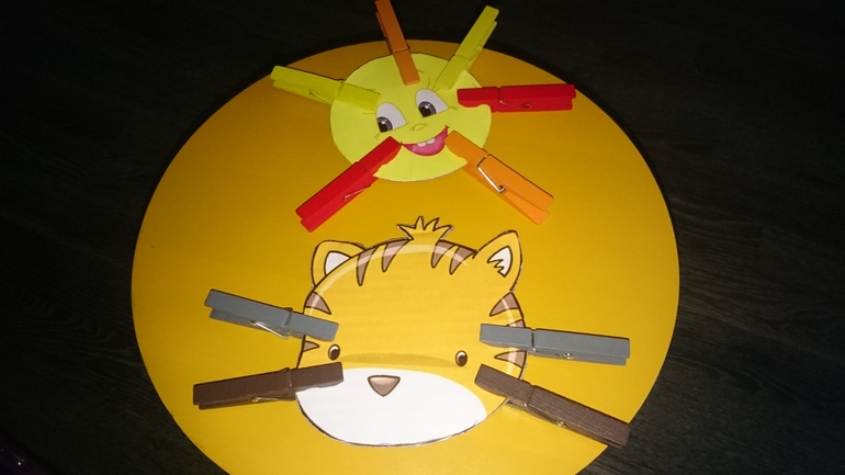 и для игр с прищепками тоже картинок на картоне наделали)