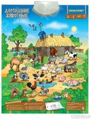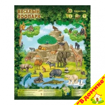 На плакате кружочки. При нажатии можно услышать голоса животных, их название и краткую характеристику. А есть задачка посложнее - нужно угадывать, о ком идет речь и выбирать.