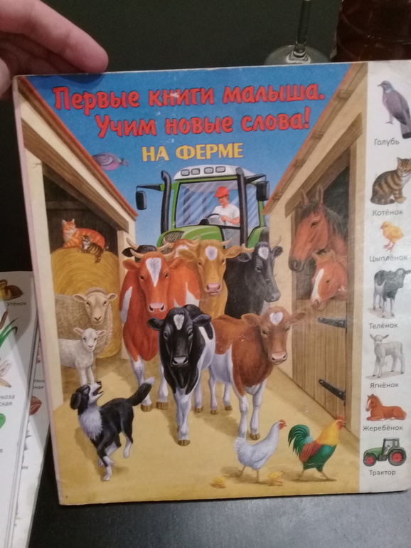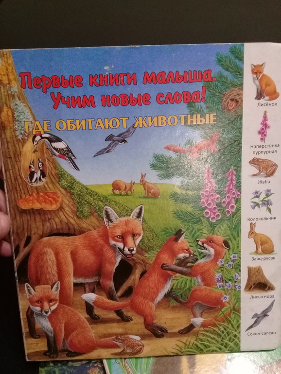 Она у нас очень давно и благодаря ей Рита знает названия и звуки животных, машин, ягод, цветов, деревьев,одежды, мебели, некоторые формы и цвета, времена года и т.п. Нереально полезная книга. Жалею только об одном - побольше бы страниц.Для "души" очень нравится книга "Сказки-малышки".
