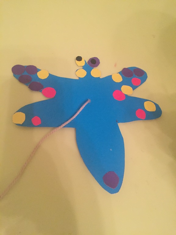 И дело тут не в возрасте. Младшая крайне структурно украшала, проговаривая, что сначала надо сделать лицо и потом симметрично заполняла стрекозу.
