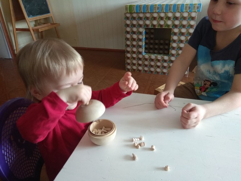 Поскольку этот ящик достаю со стеллажа крайне редко, то Лёня его увидел впервые. В результате он возился с этими 24 ящичками и их содержимым минут 15.
