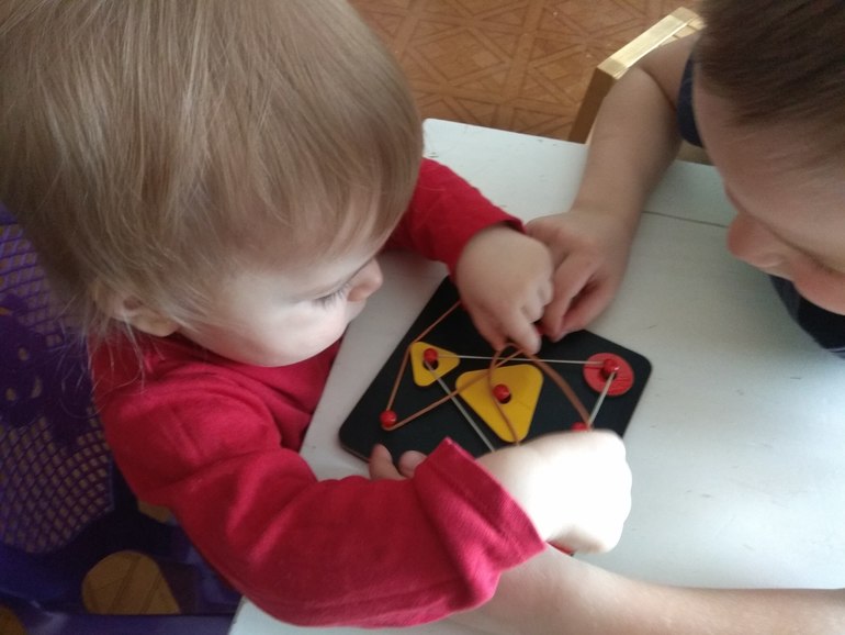Математический планшет. Очень уже хочется ему научиться растягивать резиночки, но пока пальчики не слушаются.