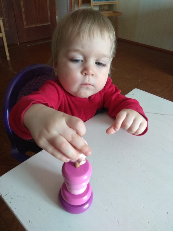 Бирюльки. Знаю, что многие боятся давать мелкие детальки малышам. Но я под присмотром и совсем ненадолго даю. Тут нужно крючочком подцеплять детальки за дырочки и собирать в яблочко. Даже просто собрать эти бирюльки по одной малышам полезно.