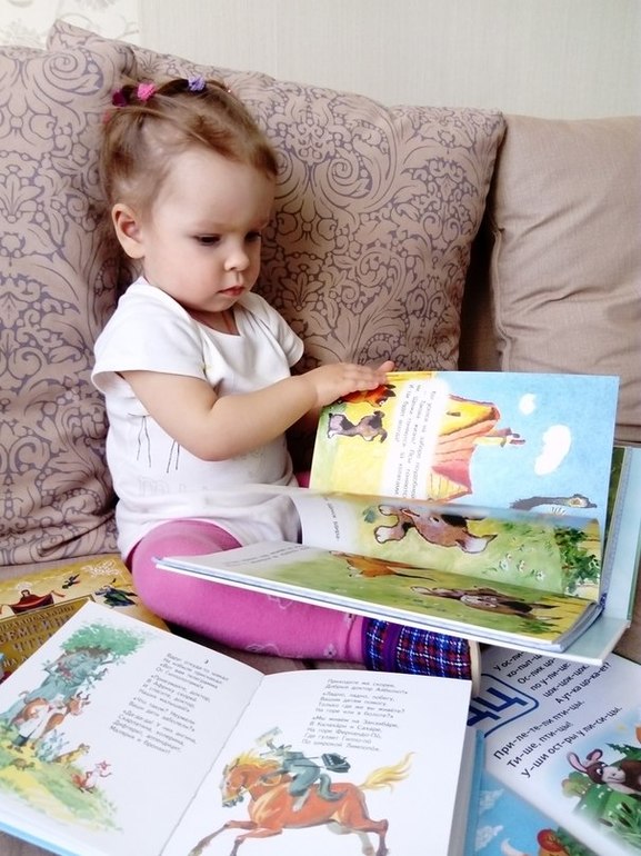 Наступил возраст, когда я практически всегда понимаю, что она мне хочет сказать и с ней можно договориться. Многие песни она стала "подпевать", и очень полюбила делать "сценки". Мишка косолапый, по лесу идет... Вика и топает, и показывает, как шишка упала в лоб и т.д.