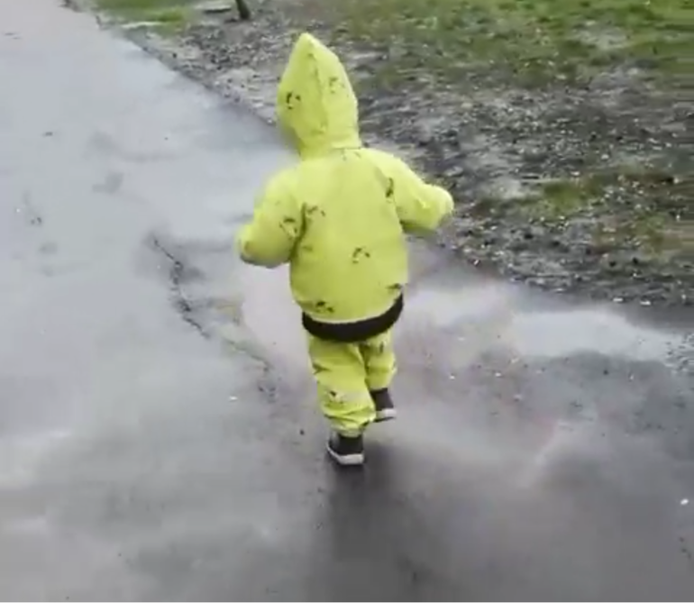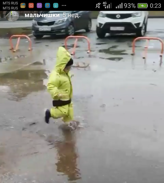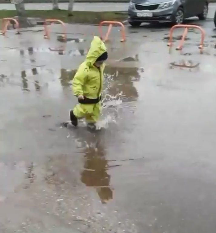 Секундное замешательство сына и он побежал в лужу...а после молча пошел в дом!!!