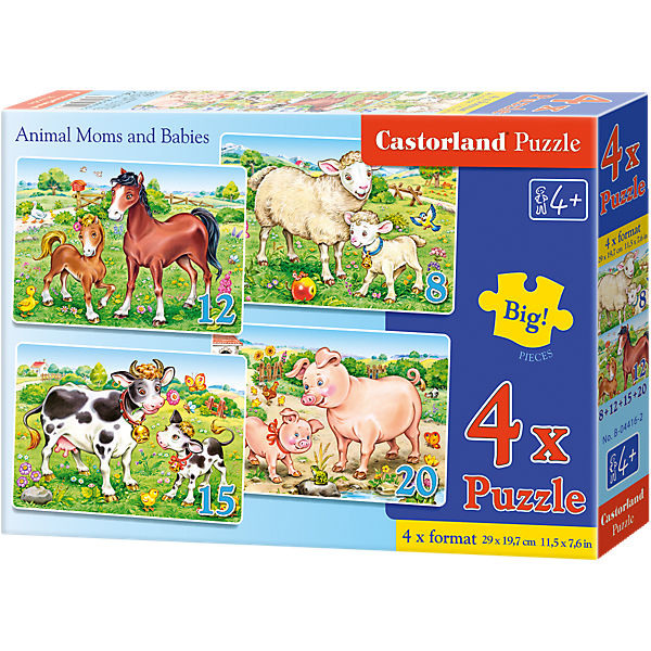 В наборе несколько пазлов из 2, 3, 4, 5 и 6 кусочков. Крупные, рисунки красивые. Ребенок постепенно учится собирать из большего кол-ва кусочеов. Я взяла животных Африки, домашних животных и фрукты. Очень клевые