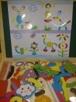 Нам подарили на 3 года интересную развивайку - конструктор магнитный серия лесная мастерская - очень интересный и развивающий. Этакий мини мольберт, на нем можно рисовать мелом и фломастерами с одной стороны, и из фигурок составлять картинки с другой.