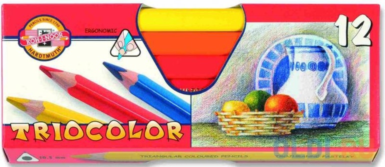 На данный момент из цветных карандашей нам очень нравятся Koh-I-Noor Triocolor. Удобно держать, не ломаются и ярко, насыщенно рисуют.