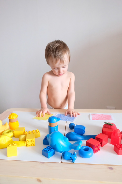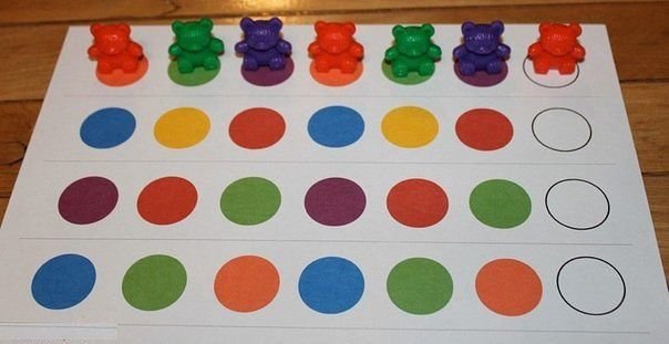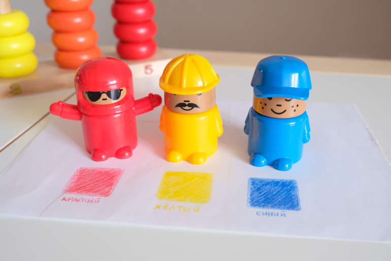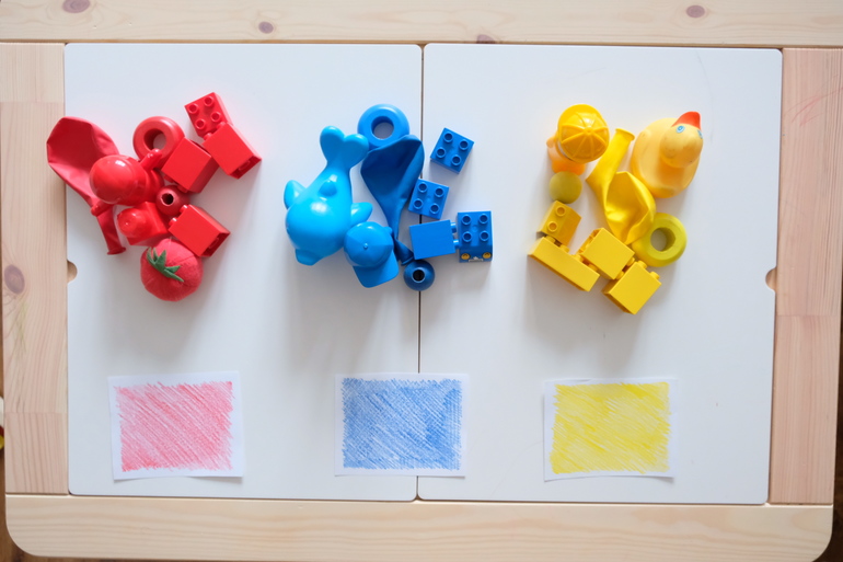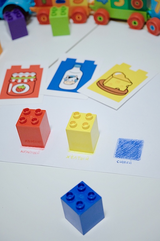 Из LEGO мы и цветные паровозики делаем, и просто ставим кубики на соответствующий им цвет, нарисованный на бумаге, и тоже сортируем с остальными игрушками.