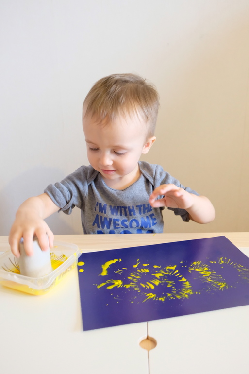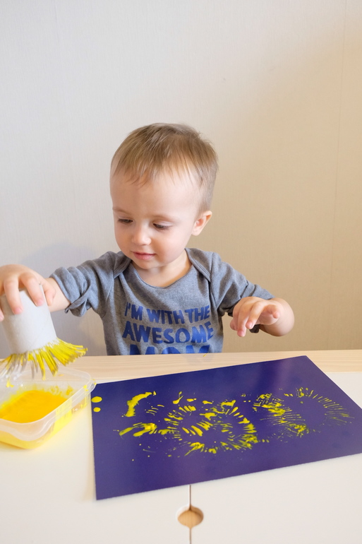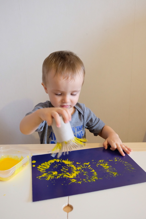 2. Сын макал втулку в краску и штамповал ей по листу бумаги. Макал и штамповал. Очень это легко и просто делается.