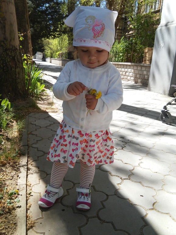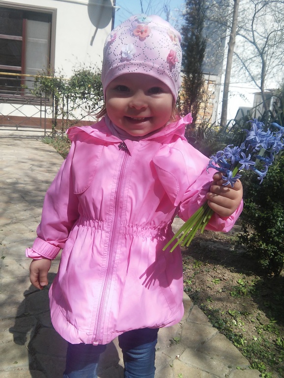 Очень добрая. На улице все цветы наши. Одуванчики, сирень....мимо не проходит, сама букеты собирает, а потом....в парке дарит всем прохожим детям🌹