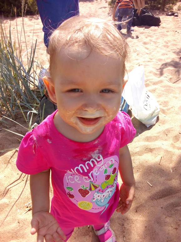 Растем и развиваемсяНам завтра уже полтора годика!Совсем большая стала,самостоятельная.Вес мы набираем потихоньку,но всё равно ставят дефицит веса,три нед. назад 9400,в год 8550,в 1,3 8900. Рост не измеряли,в 1,3 были 79 см,но Яна очень вытянулась и нога очень выросла.В мая носили 20 р,а сейчас 21 уже маловат.Одежду носили 80,а сейчас 86 только только.Врачи меня достали уже из-за маленького веса.Так и откуда ему быть большим,если до года мы очень мало набирали из-за аллергии,прикорм ввели только в год.Аллергия наша прошла в 1,2 и мы теперь едим почти всё.Не высыпаний ни красных щёк больше нет.Делали УЗИ брюшной полости и сдавали кучу анализов,всё в порядке.Едим почти общий стол,очень любит тефтели с овощами и домашние сосиски.Правда супы приходится до сих пор блендером,не есть их по другому.С горшком у нас просто беда,не хочет в него ходить и всё тут.Уже три штуки купили,не в какую.Даже просто сажаешь над ванной и говоришь пись пись,Яна просто орёт и вырывается.И наконец настал тот момент,когда она сама начала засыпать,без всяких укачиваний.Сама просится в кровать,я её накрываю,задвигаю шторы,выключаю телевизор и выхожу из комнаты.Минут через 5 захожу,ребёнок спит.Очень любит гулять,подходит сама к входной двери и показывает,мол пошли гулять.На площадке её любимое песок и катание с горки.Очень общительная с другими детьми.Ездили на тех выходных отдыхать на Финский залив,Яна была в восторге там море песка и воды.Она была готова прям занырнуть,восторга было море,ну и мы в первый раз попробовали мороженое,папа дал пока я не видела.