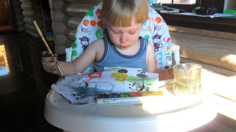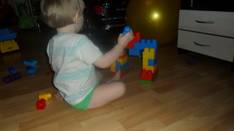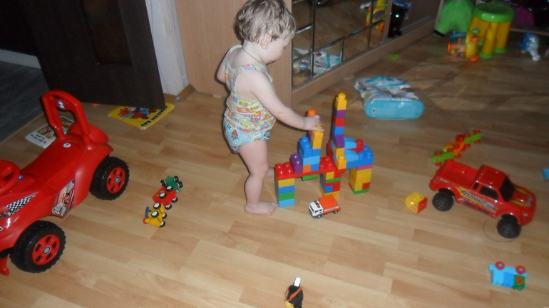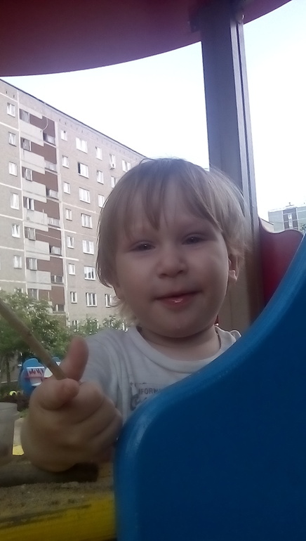 Сфоткать сложно, убегает, на месте не стоит, но в целом спокойный. На улице гуляем за ручку, любит чтобы его катали в коляске или на велосипеде, но если выходим без транспорта гуляет ногами, от рук на улице отучились, может ходить 1-2 часа с перерывами на посидеть и поиграть. Никуда от меня не бежит, всегда рядом, очень осторожный. Любит играть в песке, собирать камни и палки, на площадке качели все так же в приоритете, но и горки тоже любит. Дома играет машинами, как раньше усердно не катает, в основном таскает по комнатам, прячет в коробки, в пакеты, расставляет в ряды. К мячу абсолютно равнодушен. Любит собирать пазлы с машинами, наклейки клеить с машинами, книги смотрим с машинками, все с машинами... Это прям больная тема, футболки и трусы с машинами обязательно, если испачкается очень расстраивается, ждет чтоб я быстрее закинула стирать. Есть особо любимые трусы, я их уже спрятала, снимать их вообще не дает. В общем модник тот еще. Очень любит пластилин, полюбил рисовать, раньше к рисованию интереса не было. Нравится фломастерами и красками, потому что мелки и карандаши не ярко рисуют. Просит чтобы я рисовала ему машины, паровозы и трактора, сам "раскрашивает" их.